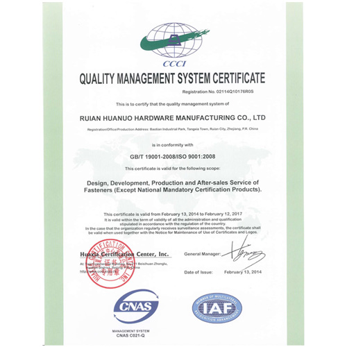 質(zhì)量管理體系認(rèn)證證書